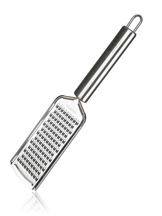 Struhadlo AZORA 24 x 5,5 cm vyrobeno z nerezavějící oceli, je určeno pro profesionální i domácí použití. Struhadlo je opatřeno praktickým očkem pro možnost zavěšení, snadno se udržuje, lze mýt v myčce na nádobí. Řada kuchyňského náčiní GASTEX splňuje náročné požadavky profesionálů a je vhodná i pro domácí použití. Jednoduchý funkční design zabezpečuje nadčasovost a dlouhou morální i kvalitativní životnost všech výrobků. Výška přepravní: 1,5 cm Šířka přepravní: 6 cm Hloubka přepravní: 24 cm Objem přepravní: 0,216 dm3 Hmotnost přepravní: kg Pozor křehké: