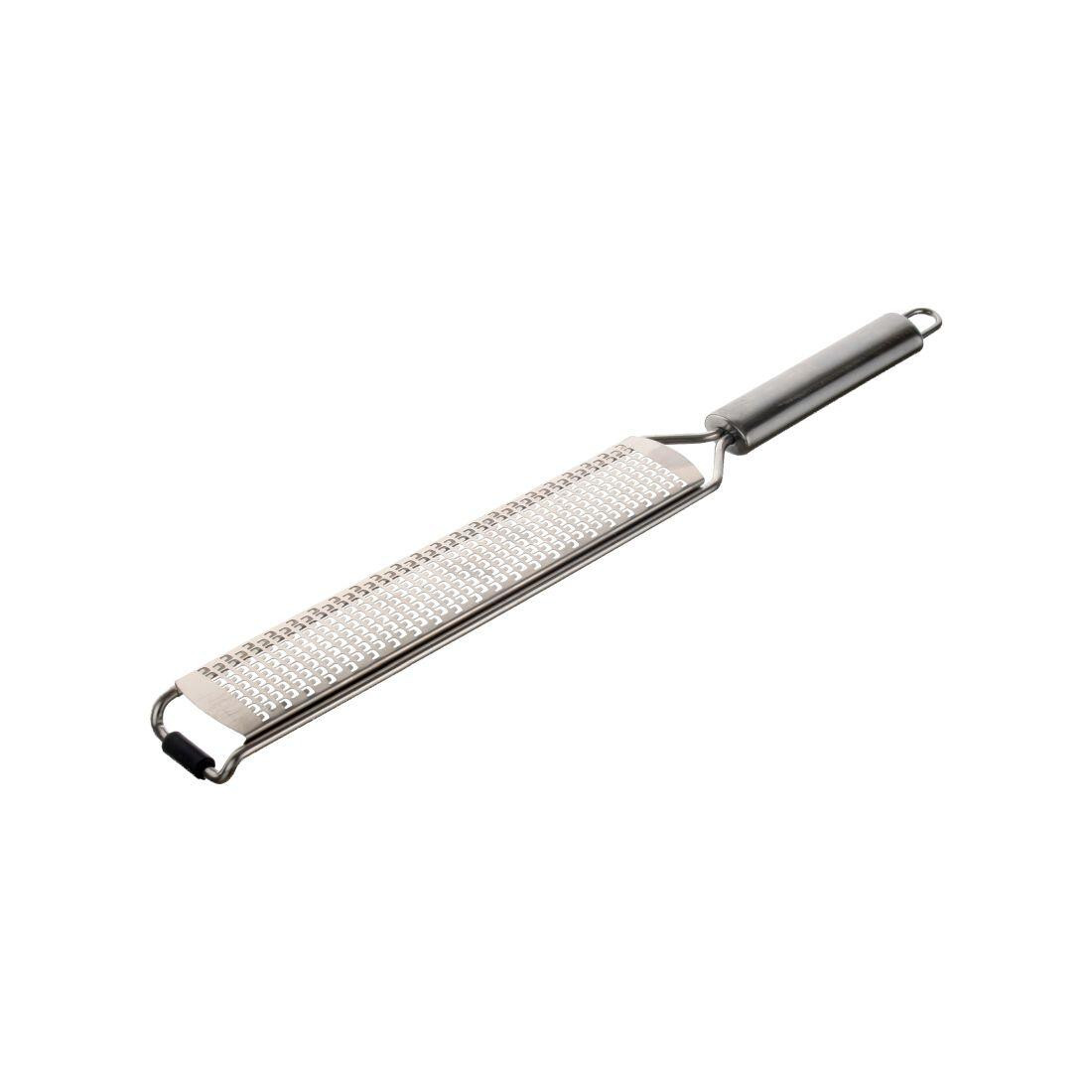 Ruční struhadlo. celková délka: 35 cm délka čepele: 20 cm materiál: nerez Struhadlo s jemným sítem pro široké využití v kuchyni (např. na sýr, čokoládu, citronovou kůru, muškátový oříšek). Šířka přepravní: 4 cm Výška přepravní: 1,5 cm Hloubka přepravní: 36 cm Objem přepravní: 0,216 dm3 Hmotnost přepravní: 0,12 kg Pozor křehké: Barva: stříbrná Materiál: nerez Počet kusů v balení: 0 Určení: Typ dopňku: Kuchyňské pomůcky: mlýnky, struhadla, kráječe Typ: Mlýnky, struhadla, kráječe: struhadlo Typ nástroje: Listingový popis: Určení: