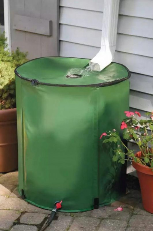 Skládací sud na dešťovou vodu o objemu 1000 l. Vyrobeno z PVC, materiálu odolného proti UV záření a korozi. Vodu můžete čerpat shora po odepnutí zipu nebo použít kohoutek či hadici.