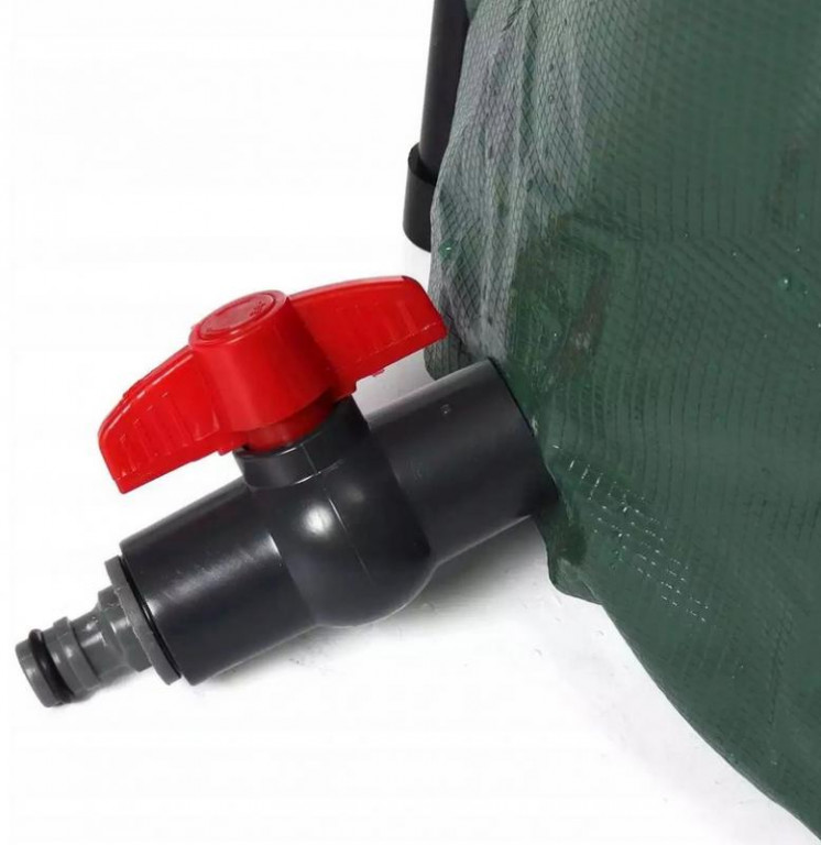 Skládací sud na dešťovou vodu o objemu 250 l. Vyrobeno z PVC, materiálu odolného proti UV záření a korozi. Vodu můžete čerpat shora po odepnutí zipu nebo použít kohoutek či hadici.