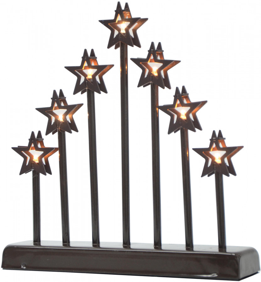svícen vánoční 7 svíček LED,teplá BÍ,hvězda,kov.,26x6x27cm