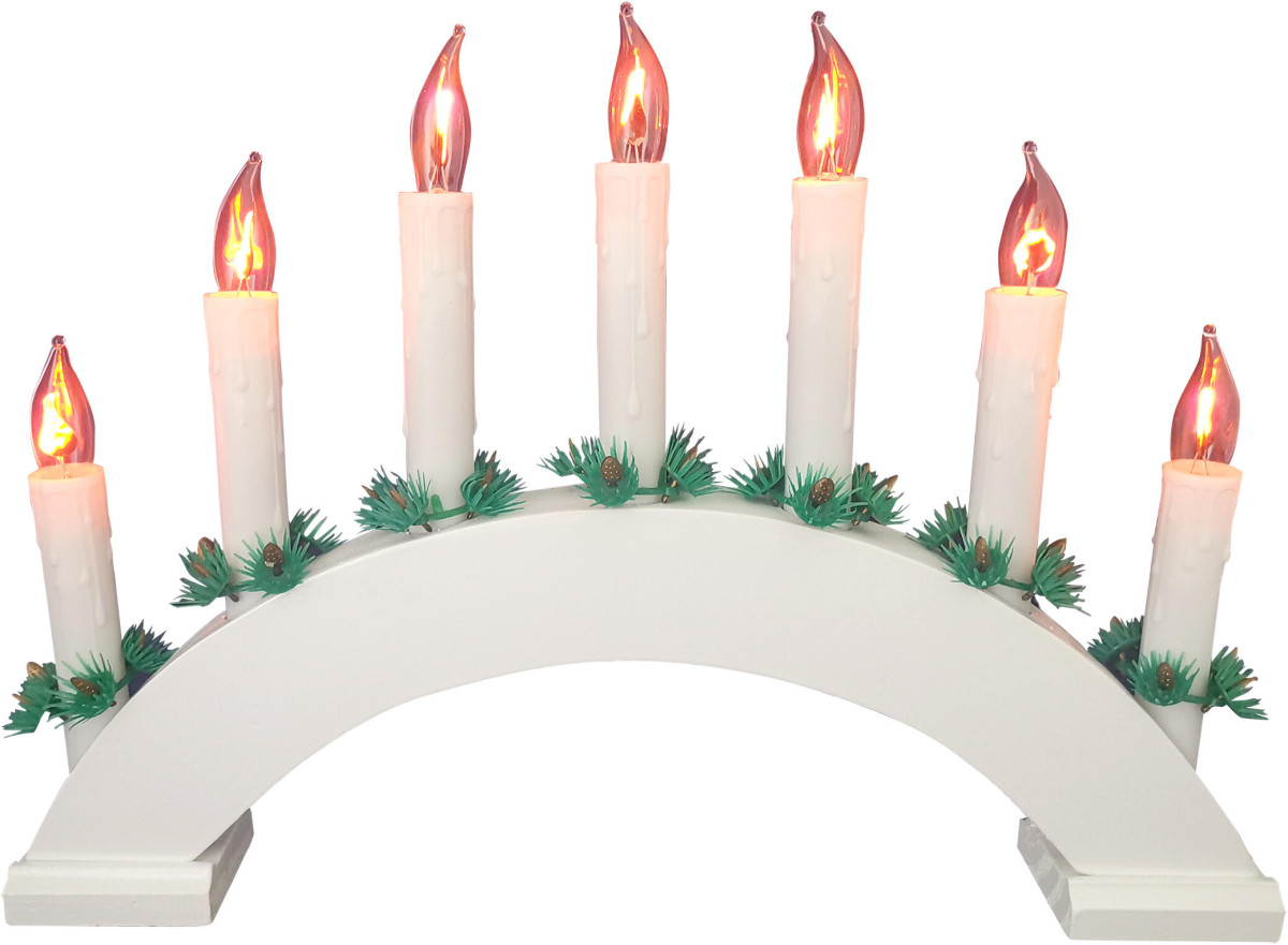 svícen vánoční el. 7 svíček PLAMEN,oblouk,dřev.BÍ,do zásuvky
