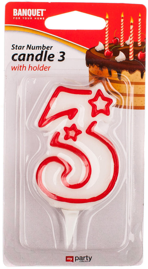 svíčka číslo 3, 7x4,5cm MY PARTY