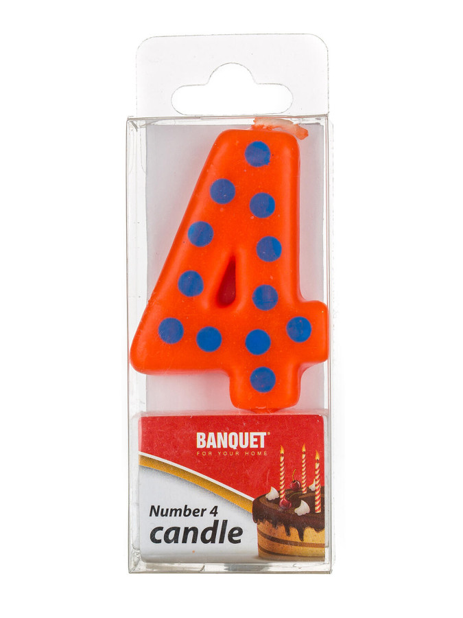 Svíčka narozeninová - číslo 4, velikost svíčky 5 x 3 cm, součástí svíčky je plastový bodec. Výrobek využijete na oslavě, zahradní párty, pikniku apod. Výška přepravní: 2 cm Šířka přepravní: 4 cm Hloubka přepravní: 9 cm Objem přepravní: 0,072 dm3 Hmotnost přepravní: 0,011 kg Pozor křehké: