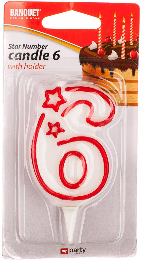 Svíčka číslo 6, 7 x 4,5 cm, MY PARTY. rozměry: 7 x 4,5 cm Narozeninová svíčka číslo 6, součastí svíčky je plastový bodec. Výrobek využijete na zahradní párty, pikniku apod. Šířka přepravní: 8 cm Výška přepravní: 1,5 cm Hloubka přepravní: 14 cm Objem přepravní: 0,168 dm3 Hmotnost přepravní: 0,024 kg Pozor křehké: