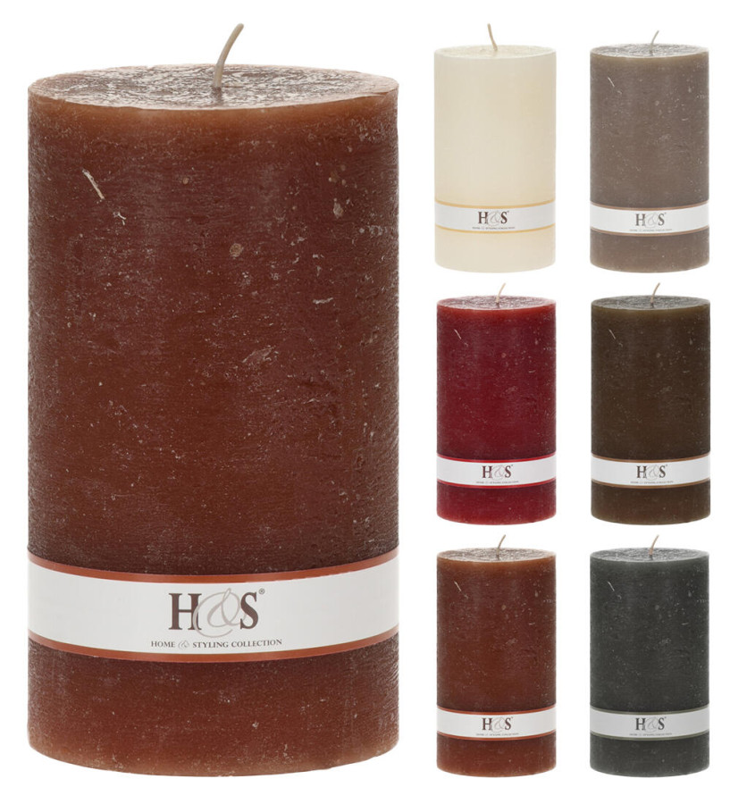 Svíčka pr. 9 x 15 cm, mix 6 barev, rustikální povrch. průměr: 9 cm výška: 15 cm hmotnost: 450 g 1 knot mix barev: červená, zelená, bílá, tm. hnědá, sv. hnědá, béžová Jednobarevná svíčka ve tvaru válce s rustikálním povrchem. Šířka přepravní: 9 cm Výška přepravní: 15 cm Hloubka přepravní: 9 cm Objem přepravní: 1,215 dm3 Hmotnost přepravní: 0,557 kg Pozor křehké: