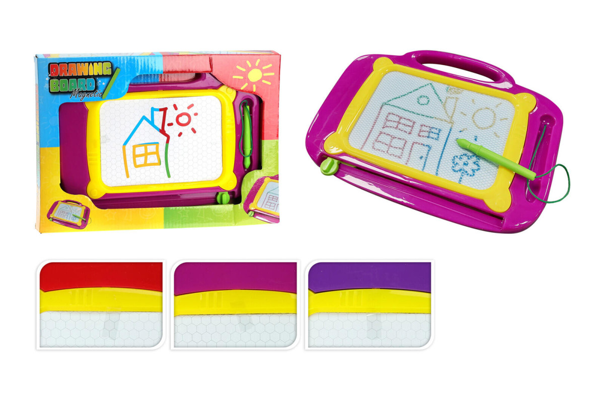 Tabulka magická kreslicí 25 x 18,5 x 1,8 cm, s tužkou, mix barev. rozměry: 25 x 18,5 x 1,8 cm materiál: plast mix barev: červená, růžová, fialová Magnetická kreslicí tabulka pro děti s madlem pro přenášení a odkládacím prostorem pro tužku. Mazání posuvníkem. S tužkou na provázku - tužka / pero a razítka součástí balení. Vhodná pro oděti od 3 let. Výška přepravní: 2,5 cm Šířka přepravní: 21 cm Hloubka přepravní: 30 cm Barva: Objem přepravní: 1,575 dm3 Hmotnost přepravní: 0,116 kg Výška: 0 cm Materiál: Šířka: 0 cm Licence: Průměr: cm Elektroodpad: Zobrazení času: Určení nábytku: Listingový popis: Výbava: Typ: Typ strojku: Pozor křehké:
