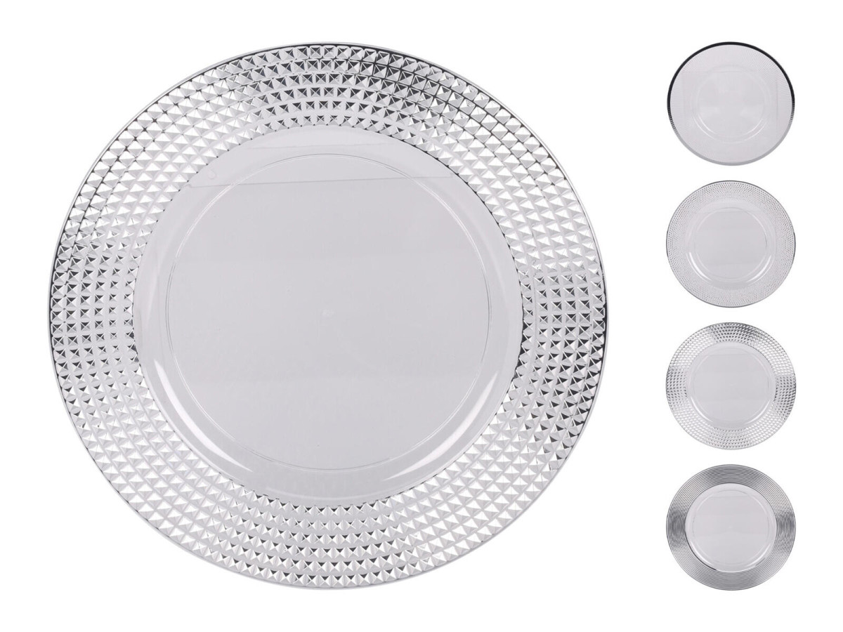 Talíř 33 cm, PH STŘ, mix. průměr: 33 cm materiál: plast barva: stříbrná plastický okraj - mix vzorů Plastový stříbrný talíř bude ozdobou na svátečním stole. Výška přepravní: 1,5 cm Šířka přepravní: 33 cm Hloubka přepravní: 33 cm Barva: Objem přepravní: 1,6335 dm3 Hmotnost přepravní: 0,196 kg Výška: 0 cm Materiál: Šířka: 0 cm Licence: Průměr: cm Elektroodpad: Zobrazení času: Určení nábytku: Listingový popis: Výbava: Typ: Typ strojku: Pozor křehké: