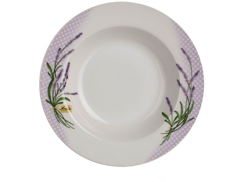 Průměr: 21,6 cm Materiál: porcelán Barva: bílá Dekor: levandule Porcelánové talíře, které jsou díky svému jemnému dekoru velice oblíbené, ale zároveň vhodné do myčky či mikrovlnné trouby. Hluboký talíř by určitě neměl chybět v žádné domácnosti. Je idální variantou pro klasické i moderní kuchyně.