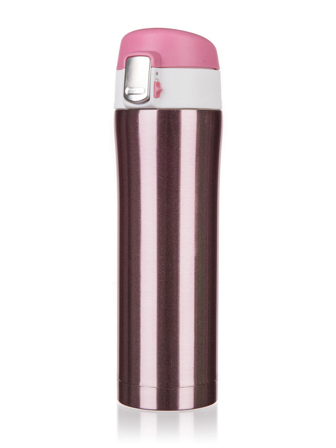 Termoska 0,43 l BODO, nerez, RŮŽ metalická. objem: 0,43 l materiál: nerez barva: metalická růžová Cestovní termoska BODO má vnější i vnitřní povrch z nerezu a plastové vyklápěcí víčko. Díky dvoustěnnému provedení si udrží nápoj déle svou teplotu. Víčko se otevírá stisknutím pojistky, u které je zámek zabraňující nechtěnému otevření termosky. Výška přepravní: 24 cm Šířka přepravní: 6 cm Hloubka přepravní: 7 cm Objem přepravní: 1,008 dm3 Hmotnost přepravní: 0,3 kg Pozor křehké: