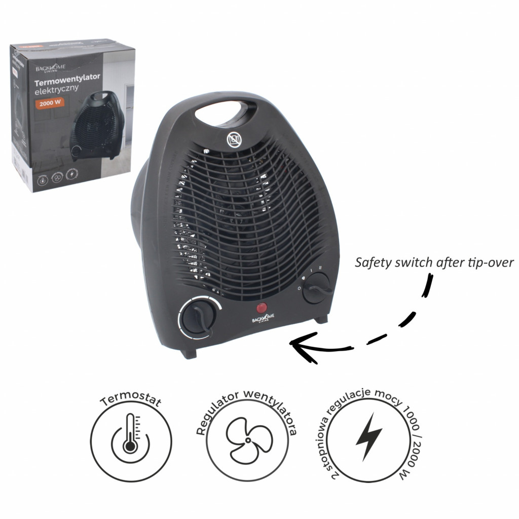 Topidlo s ventilátorem BACKHOME černé 2000W