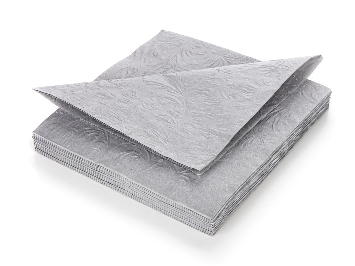 Papírové jídelní ubrousky s šedým reliéfem 3vrstvé, rozměr 33 x 33 cm. Jsou baleny v sadě 20 ks. Papírové ubrousky jsou nezbytnou součástí nejen při slavnostním stolovaní, ale také při každodenní použití při přípravě svačinek do školy nebo na výlet. Výška přepravní: 1,3 cm Šířka přepravní: 17 cm Hloubka přepravní: 17 cm Objem přepravní: 0,3757 dm3 Hmotnost přepravní: 0,1 kg Pozor křehké: GPSR: