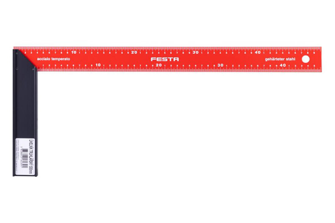 Úhelník truhlářský - délka ramen: 500 x 210 mm - stupnice v mm - přesnost 0,5 mm/m Truhlářský příložný úhelník s plechovým pravítkem. Kvalitní zpracování a materiály - tvrzená pružinová ocel, opěrné rameno z černě eloxovaného hliníku. Šířka přepravní: 21 cm Výška přepravní: 9 cm Hloubka přepravní: 51 cm Objem přepravní: 9,639 dm3 Hmotnost přepravní: 0,33 kg Pozor křehké: