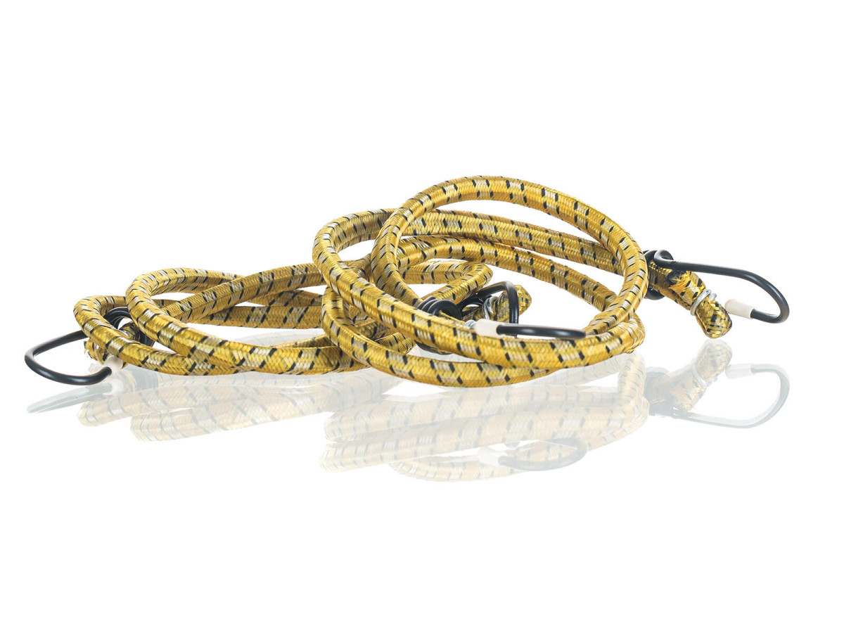 Gumové popruhy jsou vhodné pro upevnění nákladů. Na koncích jsou opatřeny kovovým háčkem. Sadu lze využít nejen v domácnosti, ale i na zahradě nebo dílně. Výška přepravní: 1,5 cm Šířka přepravní: 12 cm Hloubka přepravní: 12 cm Objem přepravní: 0,216 dm3 Hmotnost přepravní: 0,076 kg Pozor křehké: