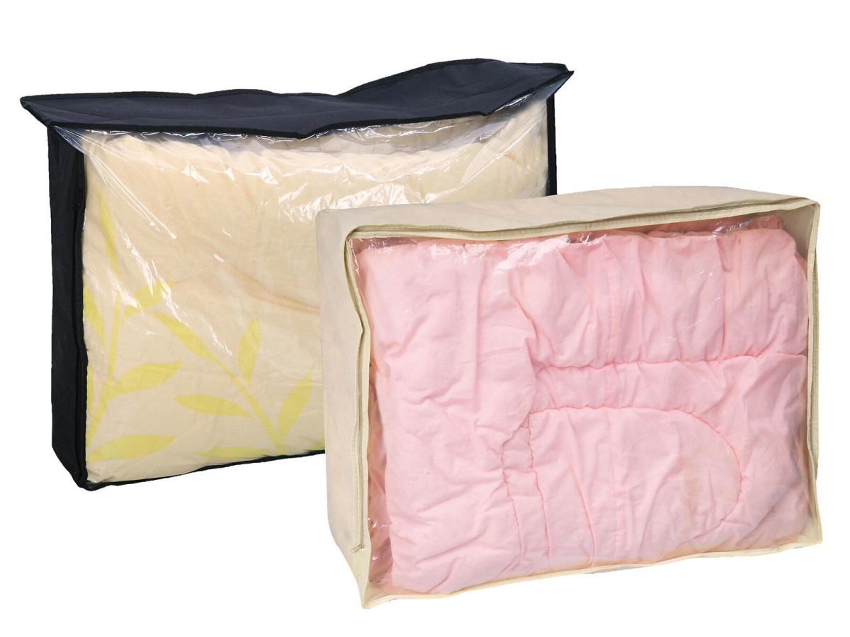 Praktický úložný vak pod postel slouží na uskladnění přikrývek, polštářů, povlečení, ručníků, oděvů a dalšího textilu. Horní část vaku je vyrobena z průhledného materiálu, uzávěr vaku je zipový. Materiál: průhledné PVC chrání oděv proti znečištění. Rozměr: 80 x 60 x 25 cm. Šířka přepravní: 22 cm Výška přepravní: 3 cm Hloubka přepravní: 32 cm Objem přepravní: 2,112 dm3 Hmotnost přepravní: 0,2 kg Pozor křehké: