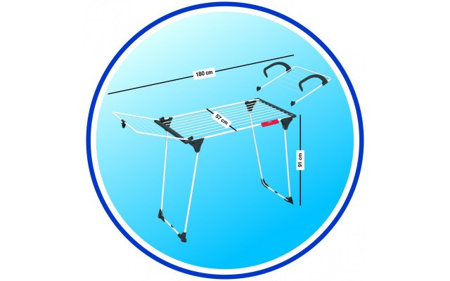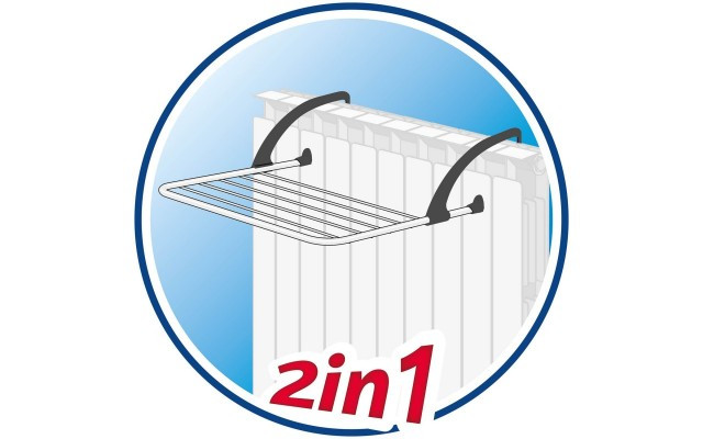 Můžete jej použít jako celek k sušení každodenního prádla, nebo můžete použít pouze jeho oddělitelné křídlo - zavěsitelné na radiátor nebo na balkón - rychle vysušíte malé množství prádla, aniž byste zabrali příliš mnoho prostoru.