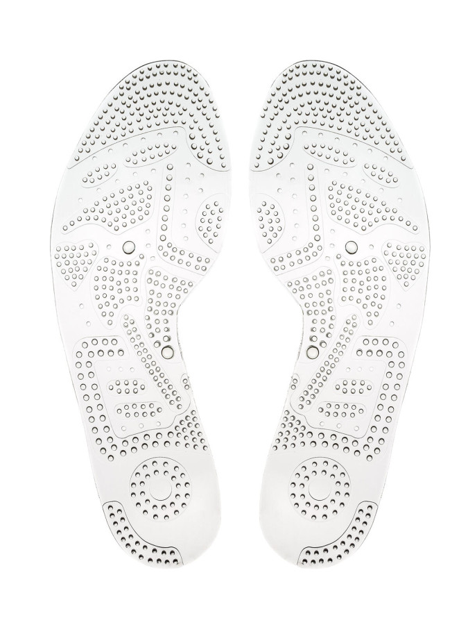 Vložky do bot masážní, pánské (pár). Masážní vložky do obuvi pro muže, které si podle velikosti bot vystřihnete dle předkresleného tvaru. Výška přepravní: 1 cm Šířka přepravní: 14 cm Hloubka přepravní: 31 cm Objem přepravní: 0,434 dm3 Hmotnost přepravní: 0,1 kg Pozor křehké: