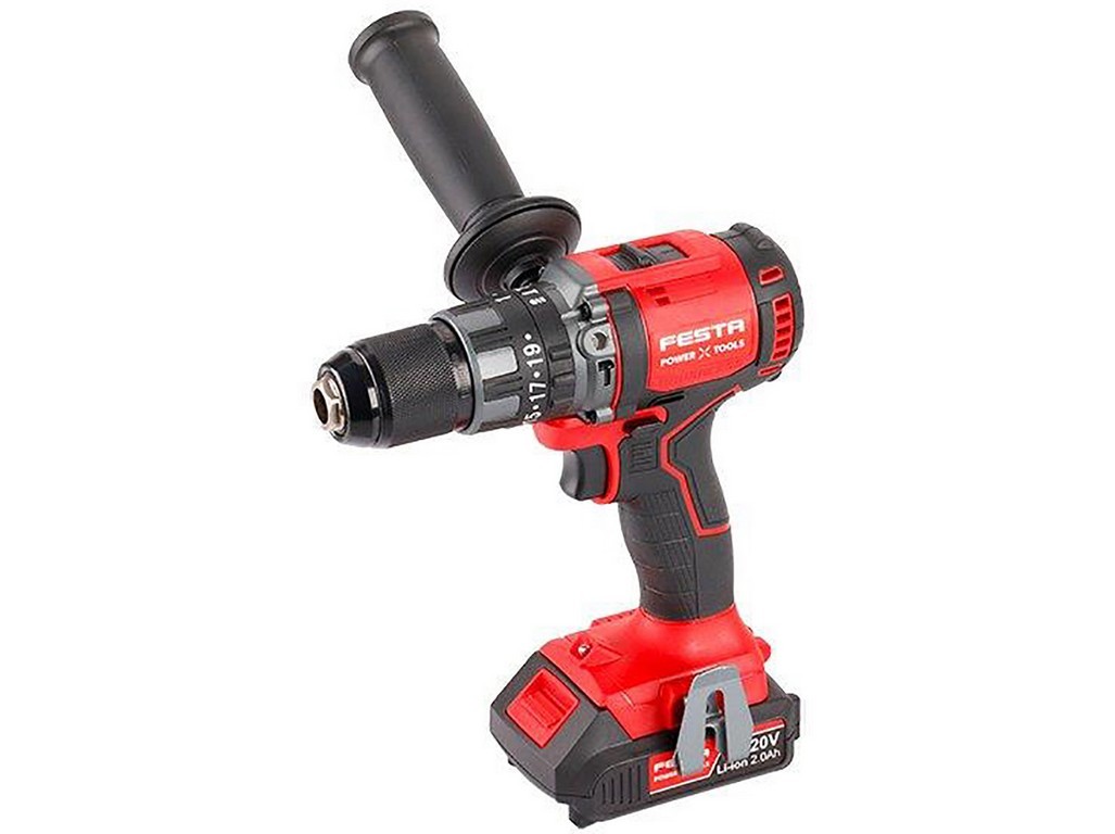 Vrtačka AKU s příklepem FESTA "BRUSHLESS" SHARE20V baterie 2.0 Ah, nabíječka, kufr. Vrtací AKU šroubovák s příklepem BRUSHLESS - bezkartáčový (bezuhlíkový) motor s velkým výkonem 80 Nm. Nový moderní typ motoru BRUSHLESS je výkonnější, má menší nároky na spotřebu energie a delší životnost. Lehký, výkonný a použitelný do většiny materiálů - kovy, dřevo, plasty a díky příklepu také do zdících materiálů. Celokovová převodovka dává možnost plně využít maximální výkon a zajišťuje plynulý chod AKU vrtačky. Otáčky 0 - 550 / 0 - 2000 min -1, sklíčidlo 2 - 13 mm, hmotnost bez baterie 1.4 kg. Plynulé nastavení volby druhu použití otočným prstencem - vrtání s příklepem, vrtání, šroubování s volbou utahovacího momentu v rozsahu 20ti stupňů. Pohodlná pogumovaná ergonomická rukojeť, umístění ovládacích prvků uzpůsobené pro pravou i levou ruku. FESTA SHARE 20 V - AKU vrtačka je součástí skupiny výrobků s možností využívat Li-ion batarie 2.0 Ah a 4.0 Ah ve všech strojích takto označených. Li-ion technologie použitá v bateriích FESTA Power x tools nabízí možnost dobíjet baterie kdykoliv - bez snižování jejich kapacity, u Li-ion baterií také dochází k jen velmi pomalému samovybíjení. Pro běžnou práci je baterie s kapacitou 2.0 Ah.