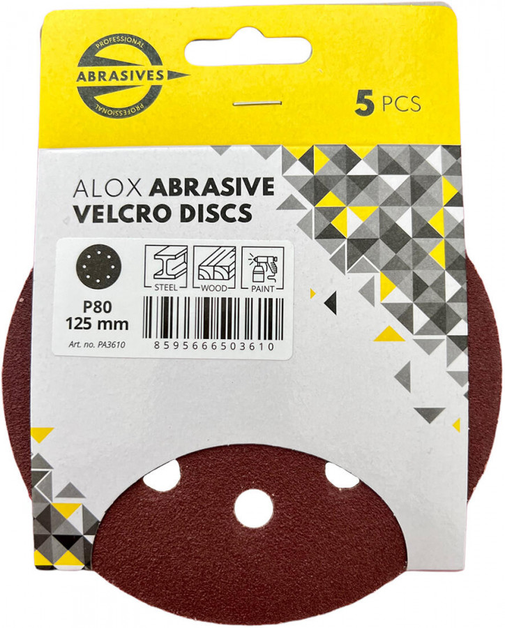 Výsek brusný pr. 125 mm, zr. 100, SZ, 8 otvorů (5 ks). průměr: 125 mm zrnitost: 100 počet otvorů: 8 balení: 5 ks suchý zip Brusné výseky se suchým zipem určené pro excentrické, vibrační a úhlové brusky. Prémiové korundové zrno s polootevřenou strukturou posypu, vhodné k broušení dřeva, laků, tmelů a všech druhů kovů. Tuhý podkladový E-papír (cca. 250 g / m²) s násypem kvalitního korundového zrna je zárukou dlouhé životnosti brusných výseků PROFESSIONAL ABRASIVES. Šířka přepravní: 12,6 cm Výška přepravní: 0,9 cm Hloubka přepravní: 16 cm Objem přepravní: 0,18144 dm3 Hmotnost přepravní: 0,045 kg Pozor křehké: