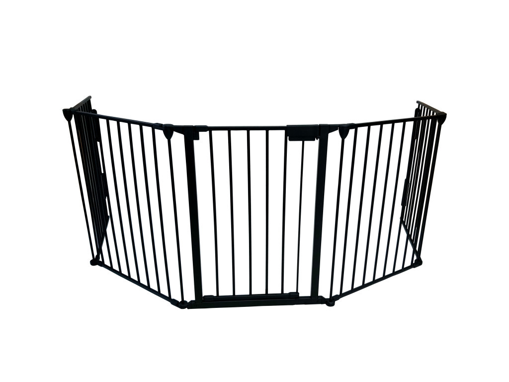 Zábrana ke krbu 76 x 300 cm. rozměry (V x Š): 76 x 300 materiál: ocel - kovová ohrádka k ochraně před dotykem a popálením o žhavý krb - jednoduchá a rychlá montáž - ohrádka je 300 cm dlouhá a sestavuje se z 5 flexibilních částí - krbovou zástěnu lze upevnit ke zdi - odolnos vůči vysokým teplotám - až do 200 ⁰C - dvířka se zajišťovacím mechanismem - včetně montážního materiálu Jestliže vytápíte váš rodinný dům krbovými kamny a máte malé děti, které chcete ochránit před nepříjemným popálením o krbová kamna nebo jeho součásti, pak je pro vás tato zábrana správná volba. Zábranu lze přidělat ke zdi.