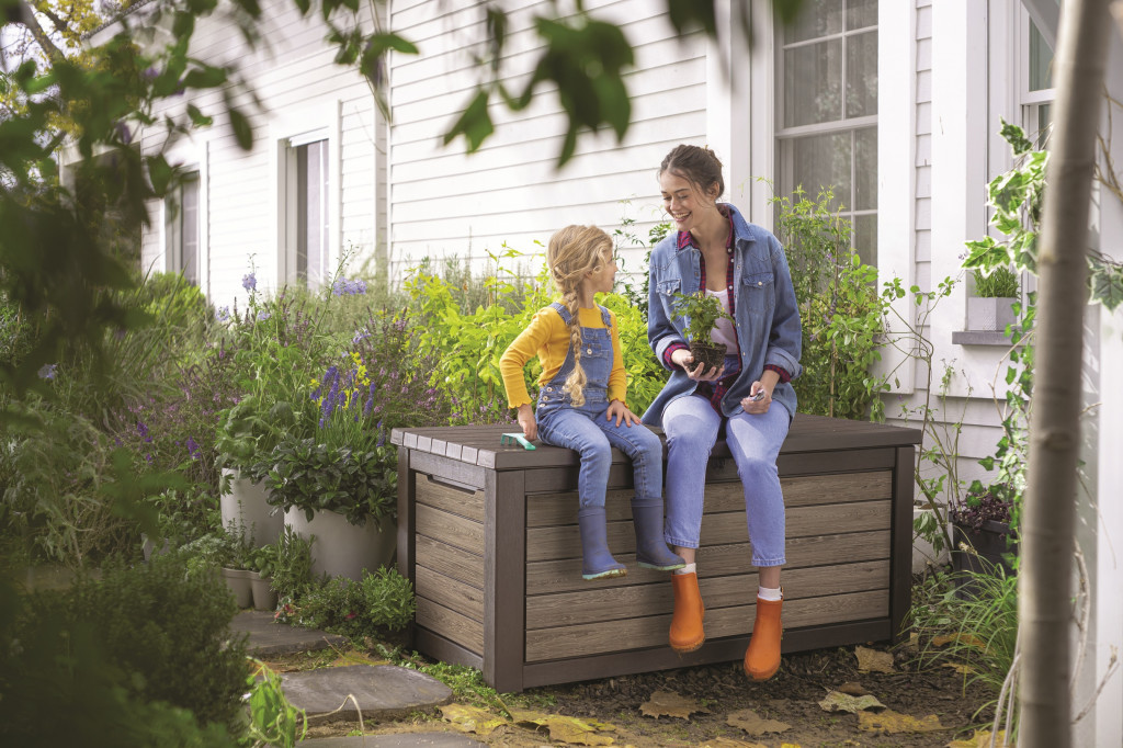 Jednotný design: Úložný box v elegantním odstínu vlašského ořechu (walnut) je součástí řady SIGNATURE, což Vám umožní sjednotit exteriér s dalšími prvky, jako je zahradní domek nebo vysoká úložná skříň či skříň na popelnice.