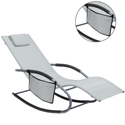 Plážové lehátko s opěrkou hlavy je ideální pro příjemnou relaxaci na zahradě, balkóně i u bazénu. Lehátko má boční kapsu na odložení potřebných věcí, které budete mít snadno po ruce. Ergonomicky tvarovaná houpací kovová konstrukce a lehací plocha z rychleschnoucího textilního materiálu šedé barvy zajistí pohodlí a uvolnění. Snadná údržba.