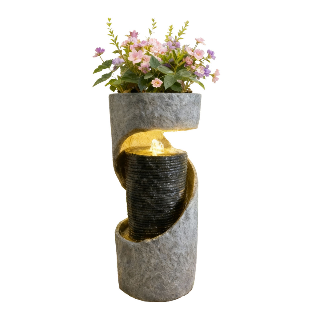 Tato moderní a elegantní spirálová zahradní fontána s LED osvětlením je jedinečnou dekorací, která vnese do vaší zahrady, terasy nebo balkonu atmosféru relaxace a harmonie. Stylový spirálový design v kombinaci s decentním osvětlením vytváří výraznou kompozici jak ve dne, tak i po setmění.