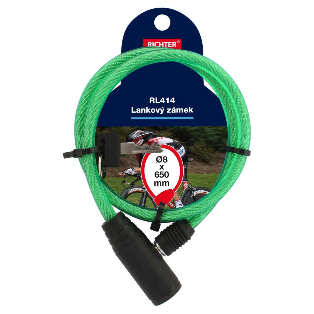 Zámek lankový 8 x 650 mm, 2 kl., ZE, RICHTER. délka: 650 mm barva: zelená 2 klíče vložka zámku se 4 odpruženými stavítky Lankový zámek RICHTER je ideální na uzamčení jízdních kol, své užití najde i při uzamykání vrat. Šířka přepravní: 10 cm Výška přepravní: 9,5 cm Hloubka přepravní: 32,5 cm Objem přepravní: 3,0875 dm3 Hmotnost přepravní: 0,12 kg Pozor křehké: