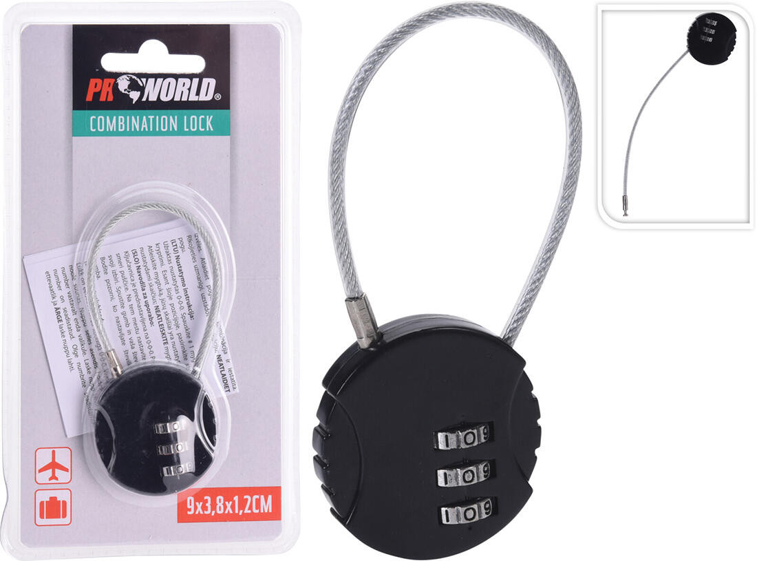 zámek na zavazadlo 9x3,8x1,2cm lankový, kódový