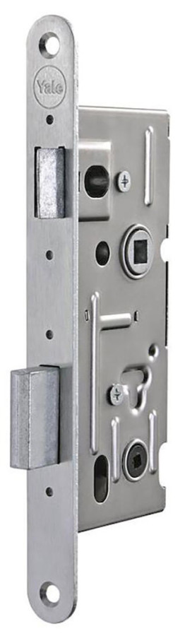 Zámek zadlabací 5220/20N WC. Mechanický zadlabací zámek ovládání WC kličkou 6 mm - jednozápadový, pravo/levý - zamknutí zámku přes spodní ořech 6 mm přes WC kličku - zámek bez převodu (střelku nelze ovládat spodním ořechem) - přeměnu zámku z pravého na levý a naopak umožňuje dělená střelka. Pouhým povolením příslušného šroubu se hlava střelky uvolní, vysune, otočí o 180°, nasune zpět na vodítko střelky a šroubem se utáhne - otvory v bočních deskách o průměru 8 mm umožňují použití dvoudílného kování (rozetové) Rozměry v mm. Rozteč Backset Hloubka zádlabu Šířka čela Požární odolnost 72 40 60 20 NE Výška přepravní: 23 cm Šířka přepravní: 2 cm Hloubka přepravní: 7,1 cm Objem přepravní: 0,3266 dm3 Hmotnost přepravní: 0,342 kg Pozor křehké: