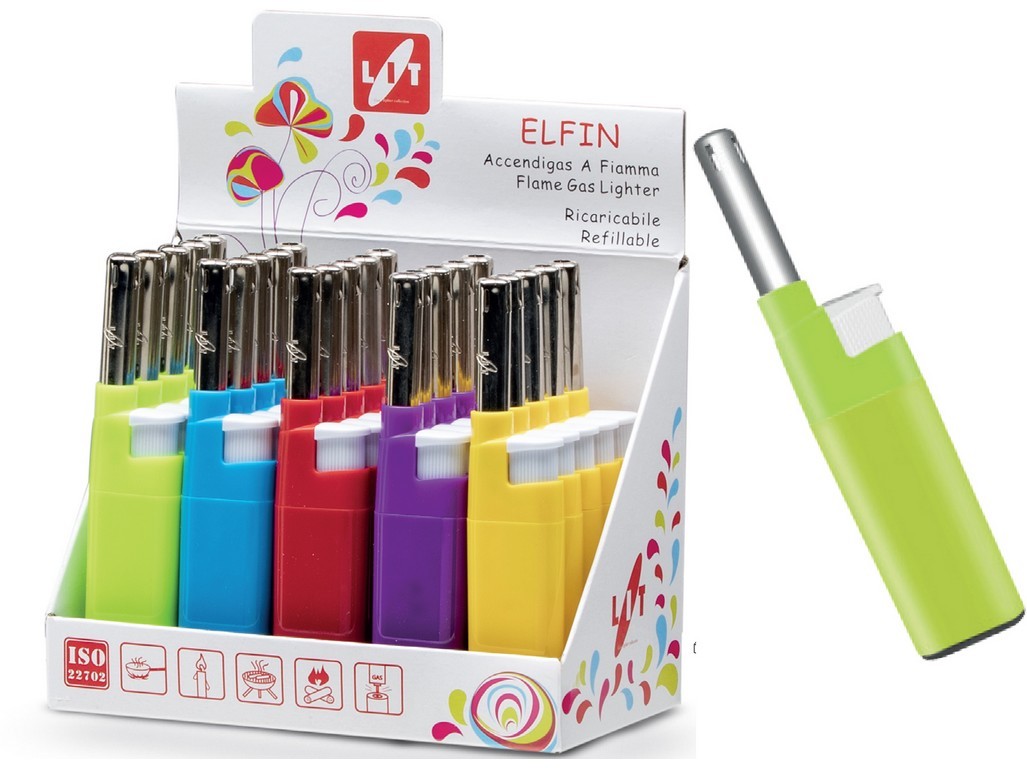 Zapalovač ELFIN 12 cm plamínkový, mix barev. délka: 12 cm nastavitelný plamen mix barev plnitelný Univerzální plnitelný zapalovač je vhodný pro zapalování svíček, plynových spotřebičů, zahradních grilů či krbů.