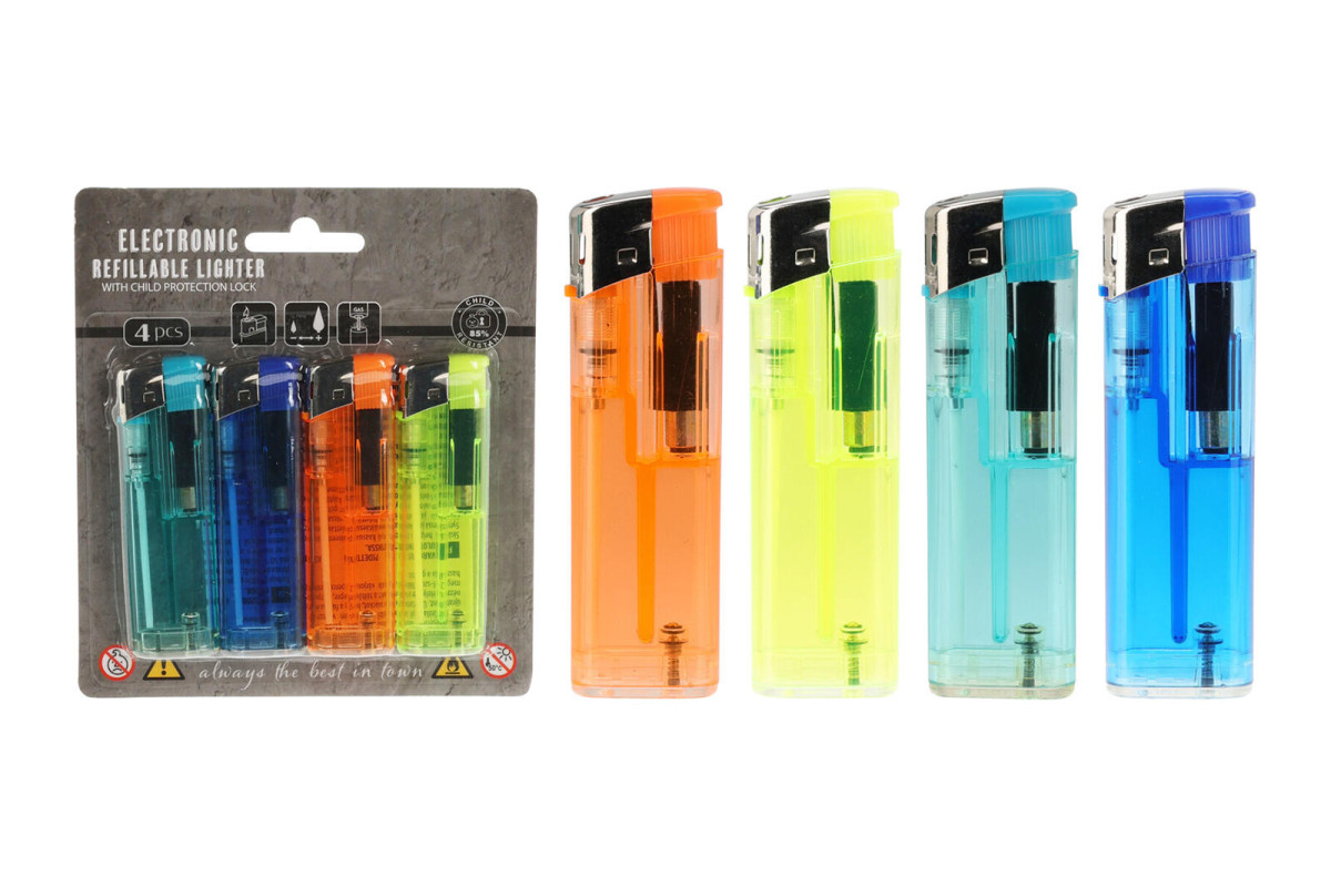 Zapalovač kapesní plnicí, mix barev (4 ks). mix barev: žlutá, oranžová, tyrkysová, modrá balení: 4 ks Plnicí kapesní zapalovač v pestrých barvách, včettně dětské pojistky. Hmotnost přepravní: 0,065 kg Šířka přepravní: 1,1 cm Výška přepravní: 12,8 cm Hloubka přepravní: 12,4 cm Objem přepravní: 0,174592 dm3 Pozor křehké: